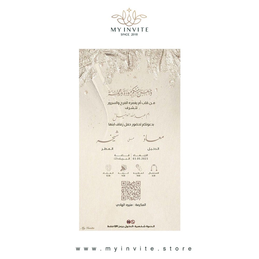 - بالإضافة إلى الباركود الخاص بالدعوة.