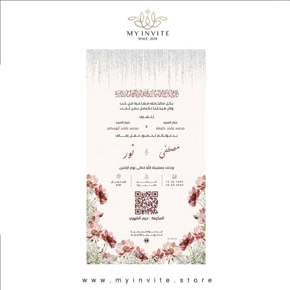 - تم إضافة باركود الدخول ليتمكن المشرف أو المشرفه الخاصين بنا يوم المناسبة مسح باركود بطاقات الضيوف وتنظيم دخولهم ومنع دخول أي شخص غير مدعو .